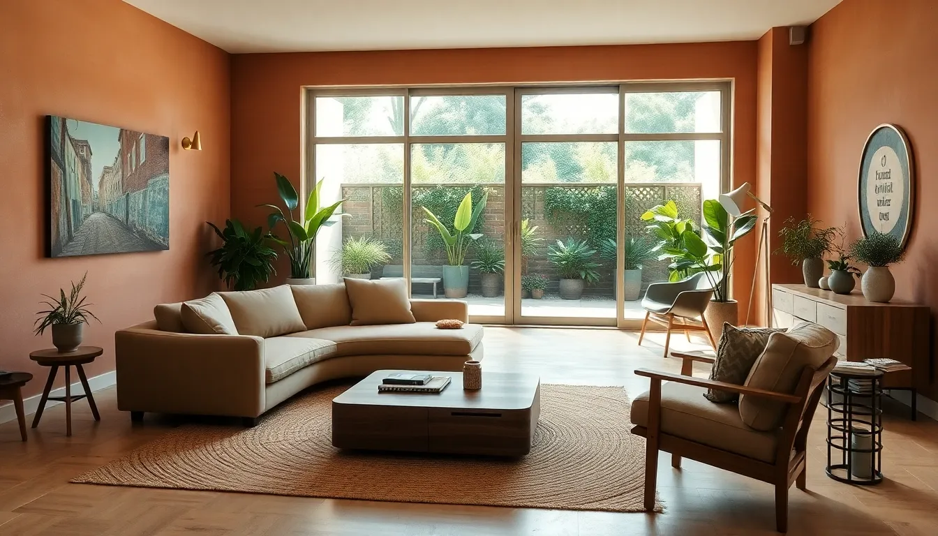 Earthy color palettes dominate. Think terracotta, sage green, warm beige, and soft clay tones. These colors create cozy atmospheres without overwhelming a room. They pair well with natural materials like wood and stone.